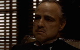 – Don Corleone, O PODEROSO CHEFÃO (1972)A máfia nunca mais foi a mesma depois que Don Corleone apareceu na telona. Seus métodos não são nada ortodoxos, mas seu amor pelos quatro filhos é inegável. Quem ousar mexer com eles, terá um fim trágico e violento.
